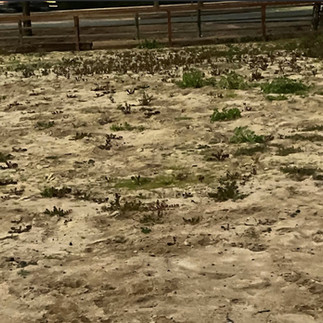 The main arena is in dire need of a good dragging with a drag harrow. That will pull up all the weeds and level the ground. This should be done every three months, at least.