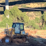 They were out there clearing trees and breaking cement and the ground was pretty sticky. You can see the large slabs of cement that they had smashed. The blue stakes at the front of the property (pics 2 & 3) indicate where the 42" existing water pipe lays. It must be protected at all costs because that would be a heck of a leak.